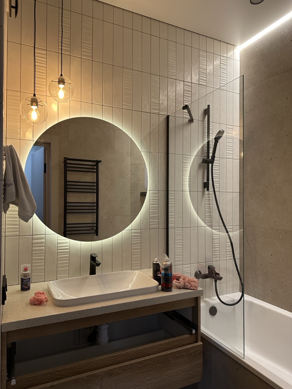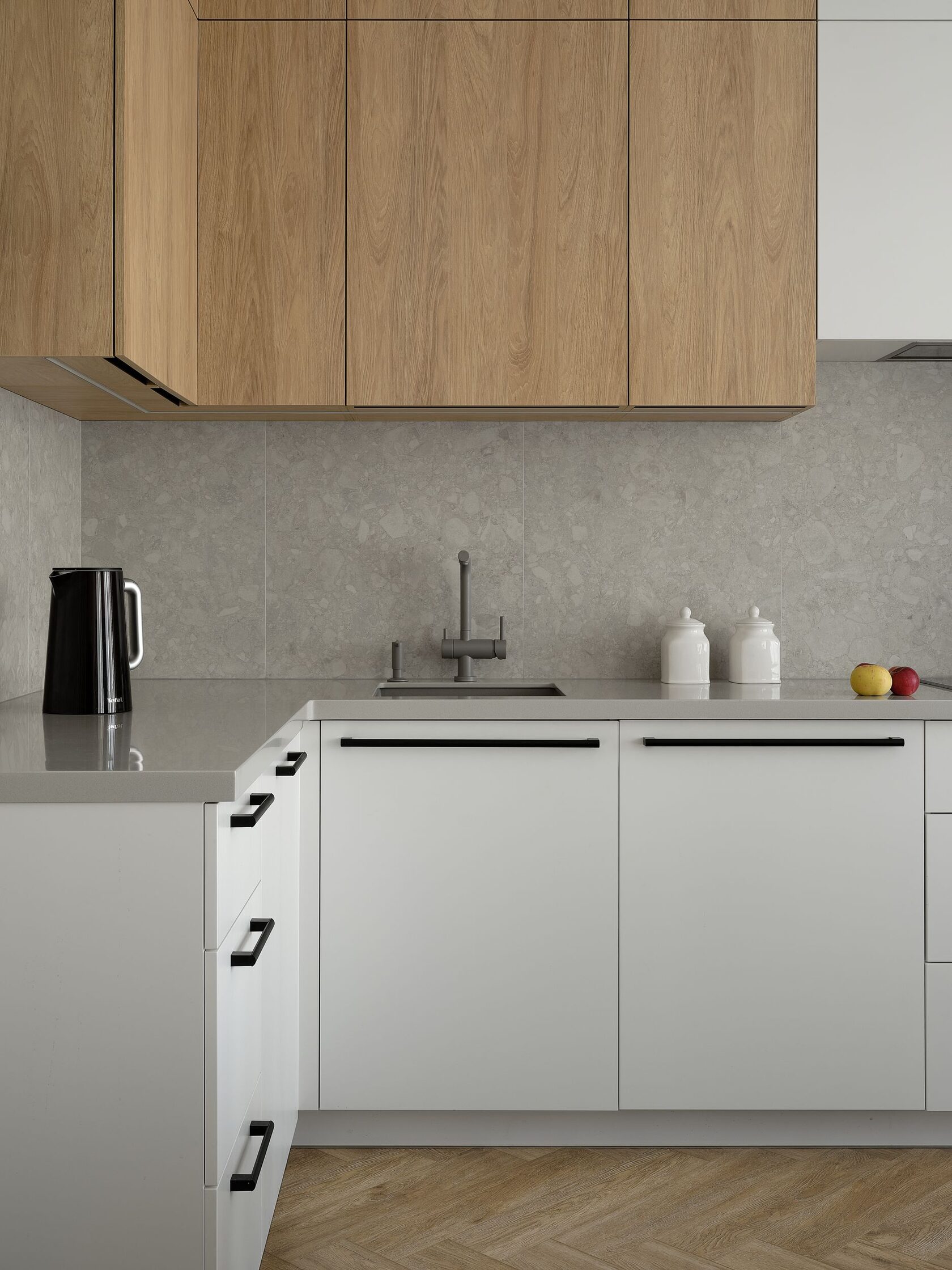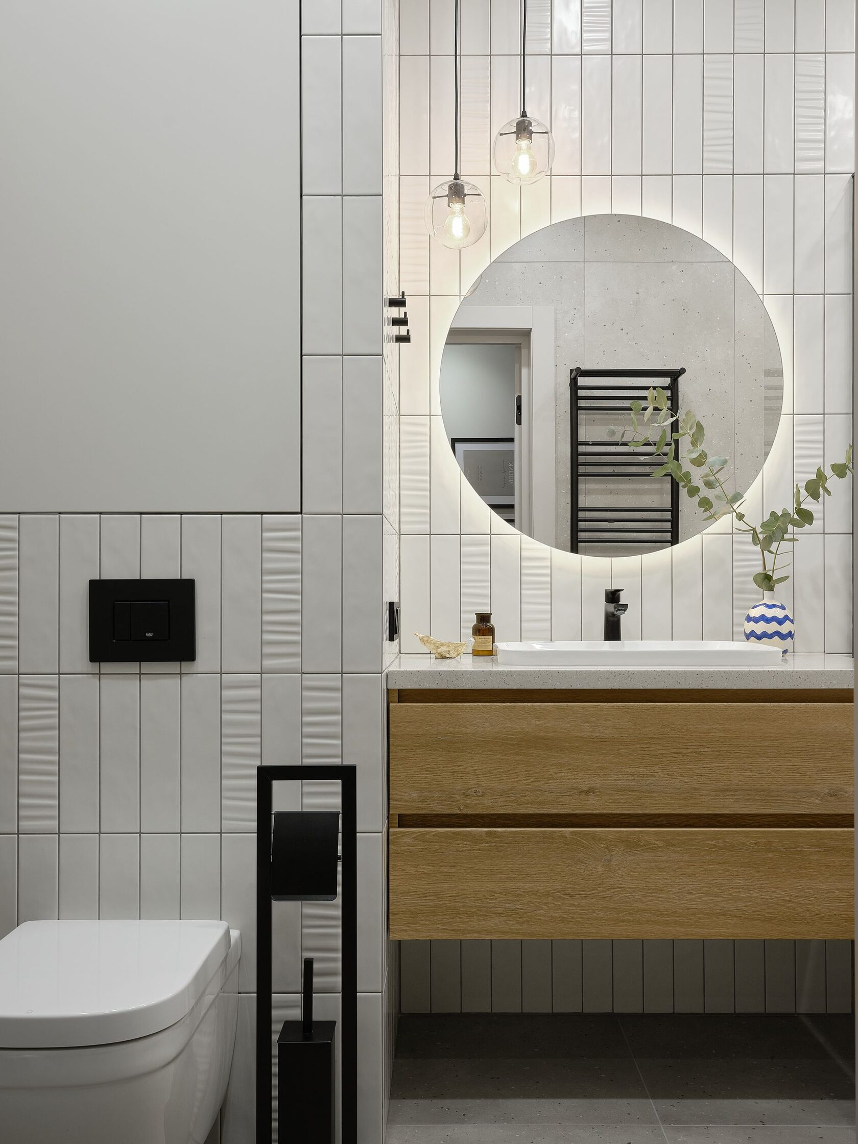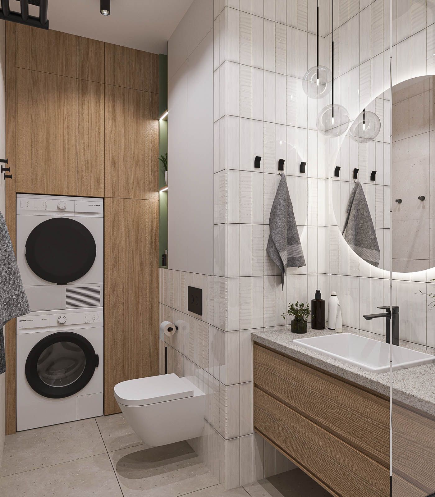 В целом интерьер решён в мягкой скандинавской палитре с песочными оттенками, где органично сочетаются уютная эстетика и современные практичные элементы.