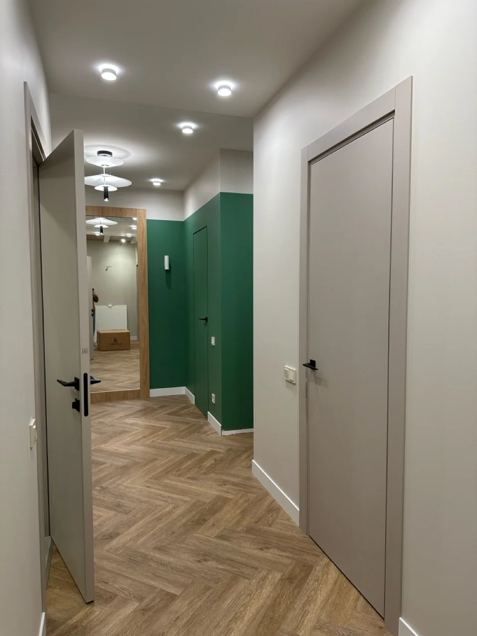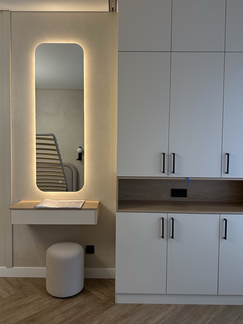 Со всеми задачами мы успешно справились! Рабочий уголок в спальне и хозяйственная комната, спрятанная за раздвижной перегородкой, теперь гармонично соседствуют с гостиной. В прихожей мы обустроили полноценную гардеробную, а в каждой комнате — вместительный шкаф.