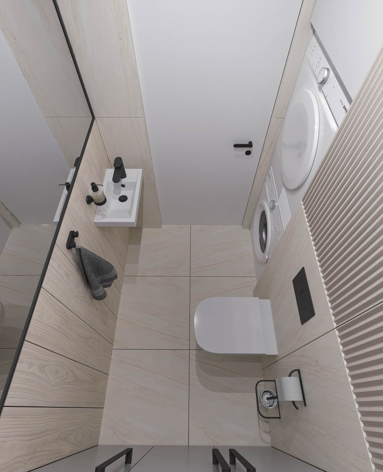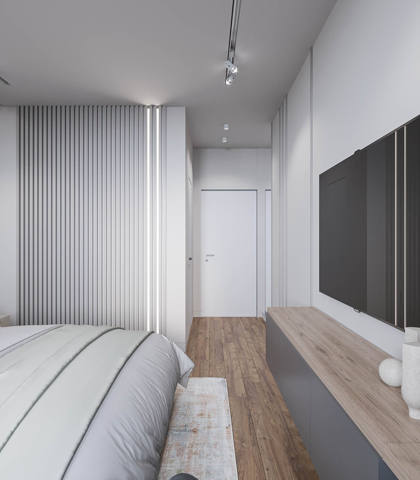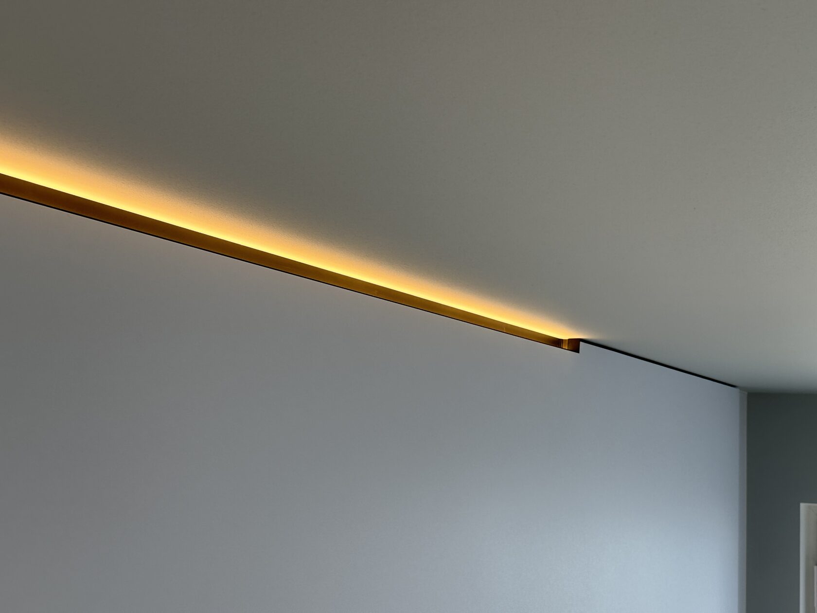 Световой потолок в коридоре стал ключевым элементом, подчеркивающим эстетику минимализма.